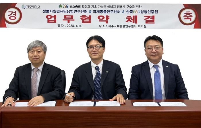 | 좌로부터 제주대학교 김인중 교수, 민태선 교수, 한국ESG경영인증원 이선우 이사장 |