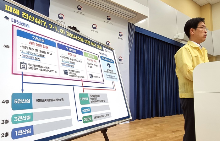 또 분진과 화재 피해를 본 5층 전산실의 시스템은 소관 부처 협의와 세부 검토를 거쳐 대구센터로 이전하거나 대전센터 내 다른 전산실로 이전해 복구하기로 방침을 정했다.