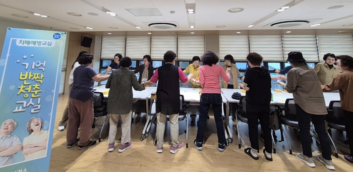 기억반짝 청춘교실은 뇌기능 활성화 및 기억력 훈련을 위한 미술, 음악, 신체활동 등 치매예방을 위한 다양한 프로그램으로 구성돼 있다.