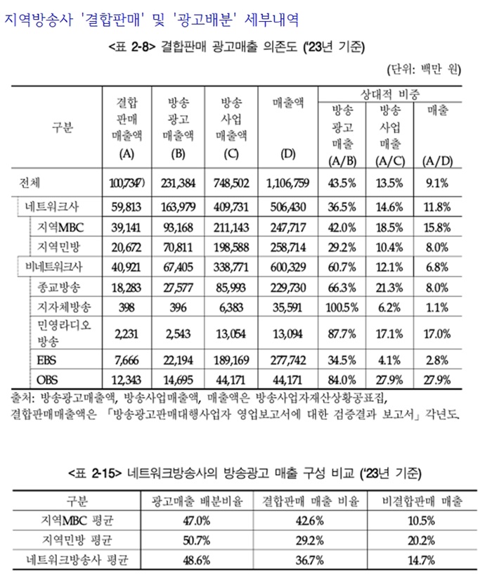 - 지역민방: 결합 29.2%, 배분 50.7%, 비결합 20.2%