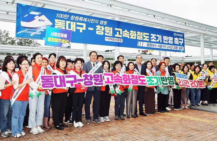 범시민추진위 관계자는 "창원은 100만 특례시이자 산업 중심지임에도 고속열차 운행 부족 등 교통권 불균형 문제가 지속되고 있다"며 "시민사회, 지역단체, 정당이 힘을 모아 동대구∼창원 고속철 도입을 위한 여론 형성과 서명운동을 펼쳐 나가겠다"고 말했다.