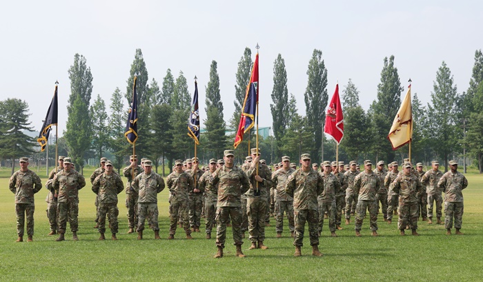부대기 올린 주한미군 순환배치 여단 /연합뉴스 자료사진 |