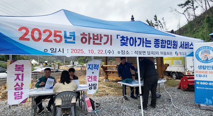 [시사코리아저널=김연학 기자] 영양군(군수 오도창)은 10월 22일 석보면 답곡2리 마을회관에서 군민 행정 편의 증진 및 민원행정 사각지대 해소를 위해 2025년 하반기‘찾아가는 종합민원 서비스’를 실시했다.