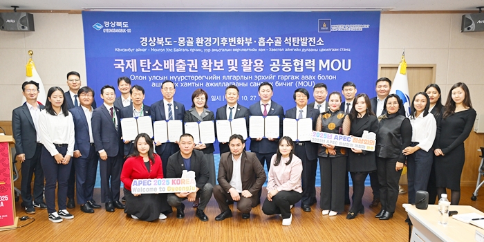 [시사코리아저널=김연학 기자] 경북도는 27일 에이펙(APEC)이 열리고 있는 경주엑스포대공원 회의실에서 몽골 환경기후변화부, 에너지부, 울란바타르시가 참여한 가운데 탄소배출권 사업 등에 대한 업무협약(MOU)을 체결했다.