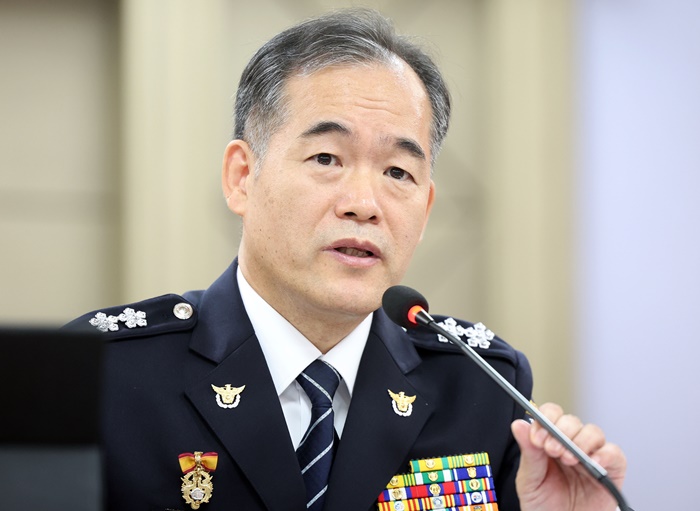 | 김종철 경남경찰청장이 28일 오후 경남경찰청에서 열린 국회 행정안전위원회 경남경찰청 국감에서 의원 질의에 답변하고 있다. /연합뉴스 |
