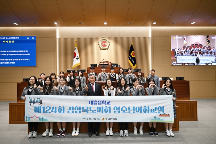 [시사코리아저널=김연학 기자] 경상북도의회(의장 박성만)는 30일 본회의장에서 포항 대흥중학교 학생 17명이 참여한 가운데 '제124회 경상북도의회 청소년의회교실'을 개최했다.