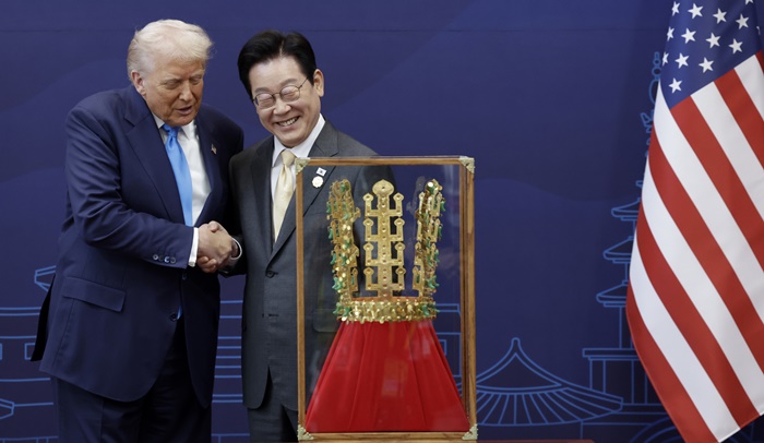 전날 이 대통령은 트럼프 대통령에게 무궁화대훈장을 수여하고 신라 금관을 본뜬 모형을 선물했다.