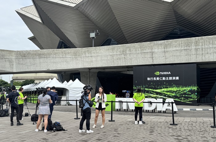 | 지난 5월 19일 젠슨 황 엔비디아 최고경영자(CEO) 기조연설이 열리는 타이베이 뮤직센터 현장. /연합뉴스 |