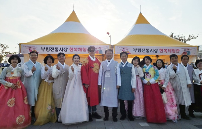 이날 참석한 관계자들은 부림시장의 다양한 한복을 직접 착용하고 국화꽃길을 배경으로 시민·상인들과 함께 사진을 촬영하며 소통의 시간을 가졌다.