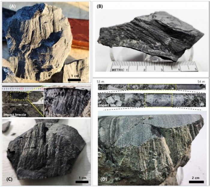 | 합천 운석 충돌구 시추코어 현장에서 발견된 충격원뿔암 /한국지질자원연구원 제공 |