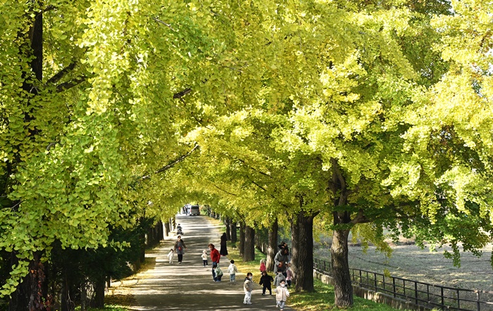 | 경남 거창군 거창읍 의동마을 길 옆 은행나무가 연노란빛으로 물들었다. /거창군 제공 |