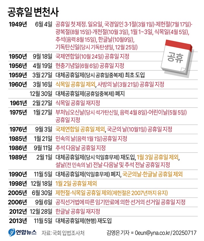 - 李대통령, 올 제헌절 때 '공휴일 재지정' 검토 당부