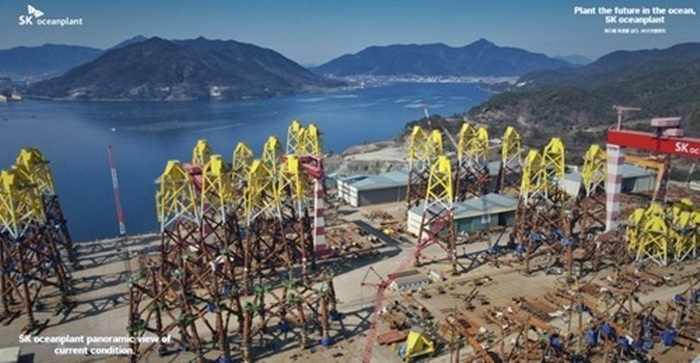 | 고성군 동해면 SK오션플랜트와 풍력발전 하부구조물 /회사 홈페이지 캡처 |