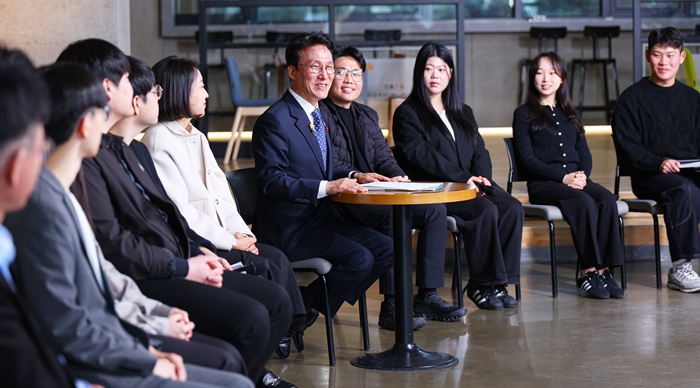 | 김민석 국무총리가 28일 대전 충남대학교에서 열린 제4차 미래대화 1·2·3#청년금융 (제5차 K-토론나라)에서 고졸 청년 대출금리 및 청년미래적금 등과 관련한 청년들의 제안을 경청하고 있다. /총리실 제공 |