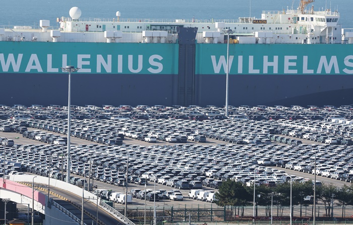 | 경기도 평택항에 수출용 자동차가 세워져 있는 모습. /연합뉴스 |
