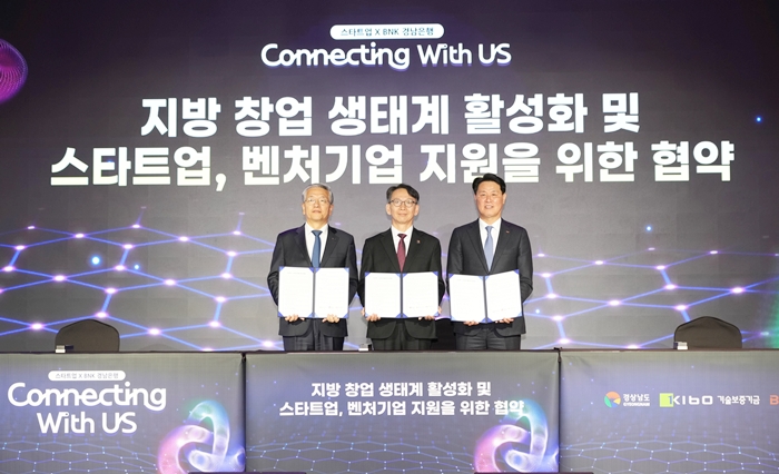 BNK경남은행은 경상남도, 기술보증기금과 함께 ‘스타트업 금융 지원을 위한 3자 업무 협약(MOU)’을 체결하고 공동 상품 출시 등 각종 협력 방안을 마련해 스타트업에 대한 지원을 한층 강화하기로 했다.