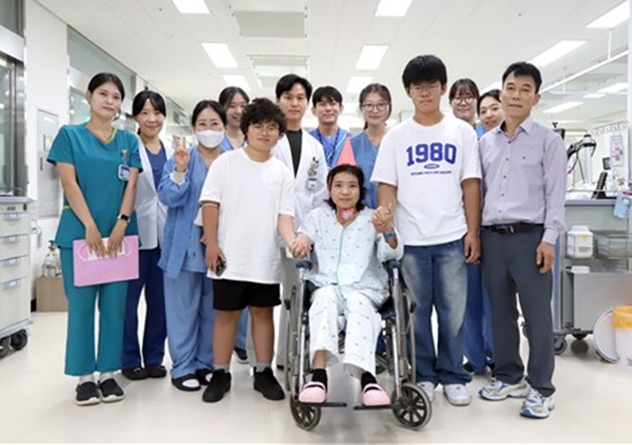 | 경상국립대병원 의료진과 NMDAR 뇌염 환자 /경상국립대병원 제공 |