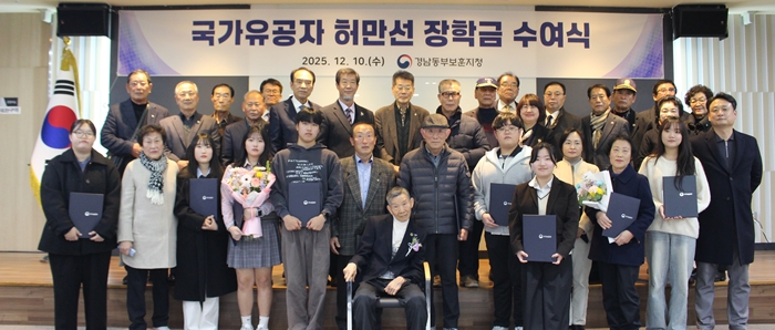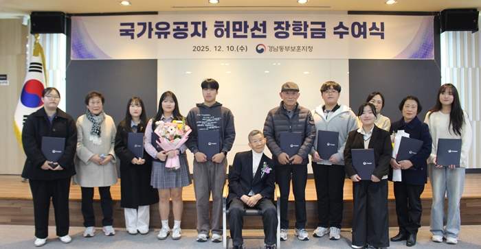 [시사코리아저널=이환수 기자] 경남동부보훈지청(지청장 김상우)은 10일 정부경남지방합동청사에서 국가유공자 허만선 장학금 전달식을 가졌다고 밝혔다. 이날 행사에서 보훈가족 중·고등·대학생 11명에게 850만원의 장학금이 전달되었다.