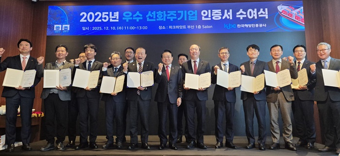 이에 한국남동발전은 10일 부산에서 열린 2025년 한국해양진흥공사 우수 선화주 기업 인증서 수여식에 참석해 강기윤 사장의 선화주 상생의지, 장기계약 프로젝트의 안정성, 해운산업 기여도 등 13개 심사항목에서 높은 점수를 얻어 발전사 최초로 최고수준인 1등급을 획득했다.