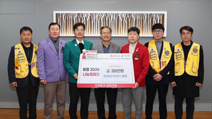 [시사코리아저널=김연학 기자] 이웃사랑과 봉사를 실천하는 국제라이온스협회 356-E(경북)지구 영양MJF라이온스클럽(회장 신종규)은 지난 16일 영양군에 '희망2026나눔캠페인' 성금 300만원을 전달했다.