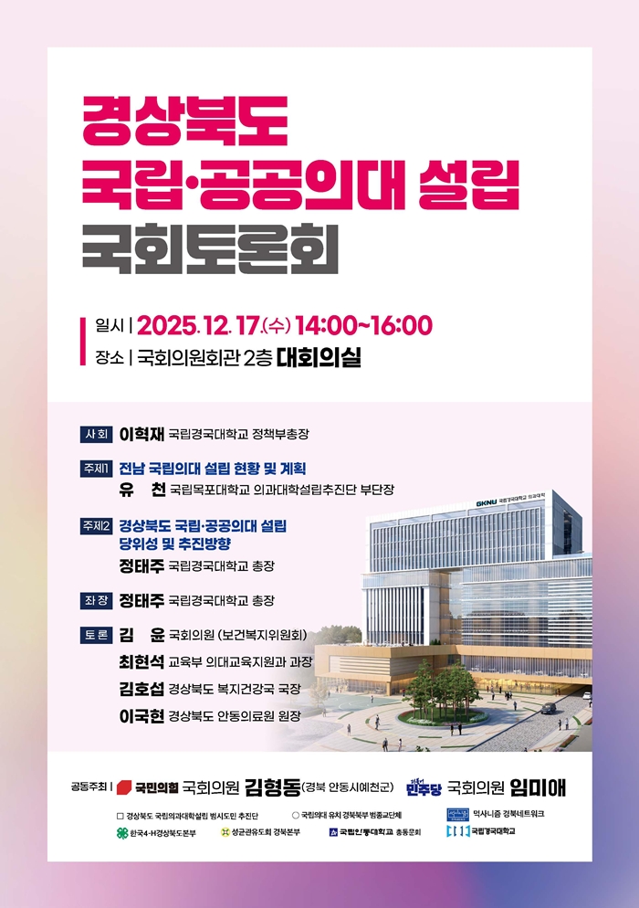 - 17일 국회서 ‘경북 국립 · 공공의대 설립 촉구 토론회’ 열려···지난해 이어 두 번째