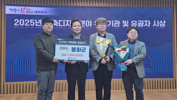 [시사코리아저널=김연학 기자] 봉화군은 지난 16일 경상북도 주관으로 열린‘2025 경상북도 건축디자인분야 우수기관 시상식’에서 건축행정 업무평가 최우수 기관상을 수상했다.