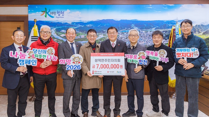 한편 합천군은 2025년 12월 1일부터 2026년 1월 31일까지 희망2026나눔캠페인 이웃돕기 성금 집중 모금 기간을 운영하고 있다.