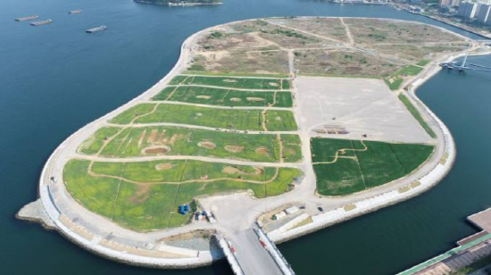 | 기반공사가 거의 완공된 마산해양신도시 전경. |