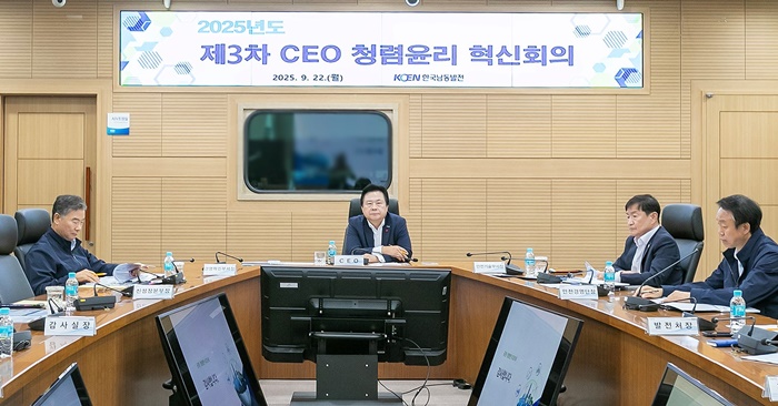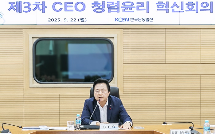 | 강기윤 한국남동발전 사장이 ‘CEO 주재 청렴윤리 혁신회의’를 주재하고 있다. |