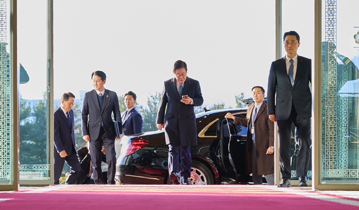 [시사코리아저널=김연학 기자] 대통령실의 청와대 이전 작업이 막바지에 다다른 가운데 이재명 대통령이 26일 용산에 위치한 집무실로 '마지막 출근'을 했다.