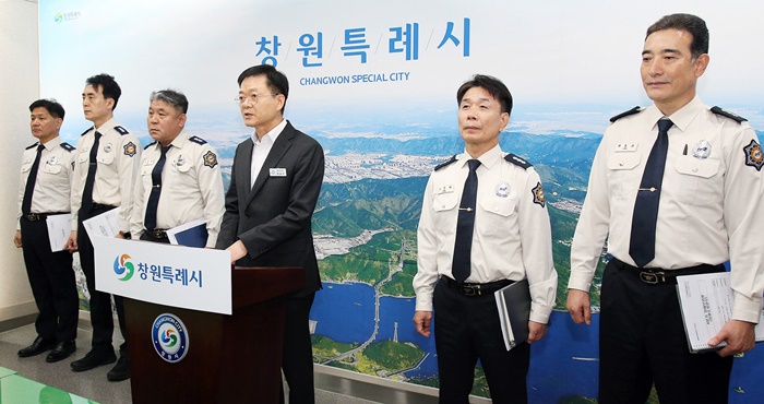 | 이상기 창원소방본부장이 2025년 4분기 창원소방본부 정례브리핑을 하고 있다. |