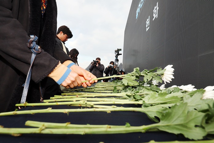 참석자들은 엄숙한 표정으로 헌화하며 희생자 179명의 넋을 기렸다.