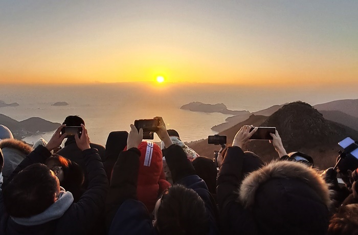 | 지난 2024년 1월 1일 거제케이블카 상부 윤슬전망대를 찾은 시민과 관광객들이 남해안으로 떠오르는 해를 촬영하기에 여념이 없다. /자료사진 |