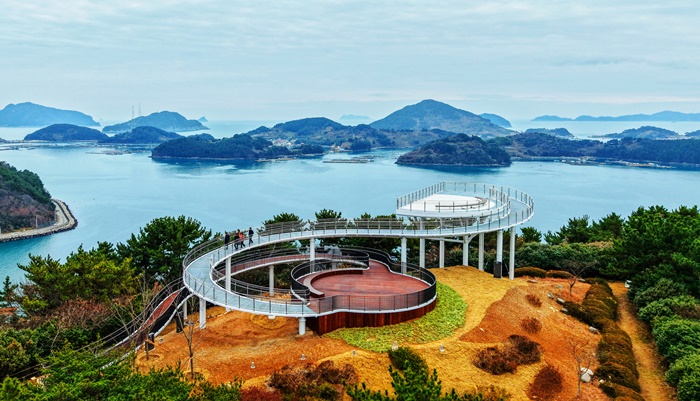 남해안 일몰 명소이자 노을 맛집으로 손꼽히는 산양읍 달아공원 전망대는 새해를 앞두고 새 전망 공간으로 거듭났다.