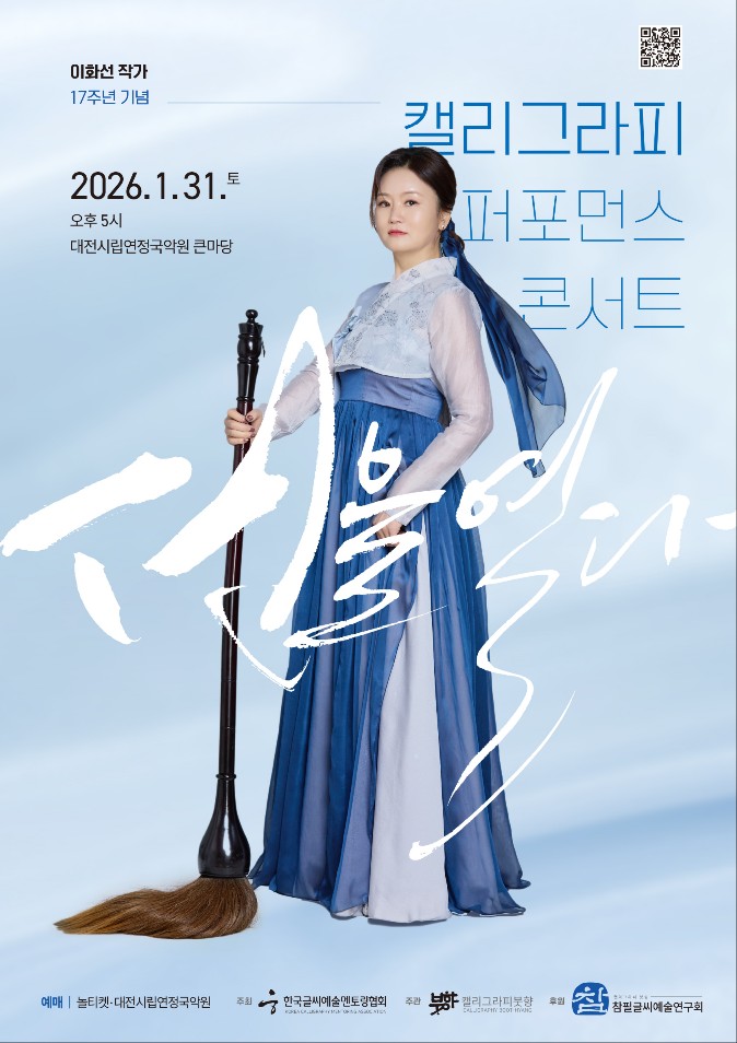 이 공연은 ‘캘리그라피 붓향’이 주관하고 ‘참필글씨예술연구회’가 후원한다. 예매는 대전시립연정국악원 홈페이지와 NOL티켓을 통해 가능하다.
