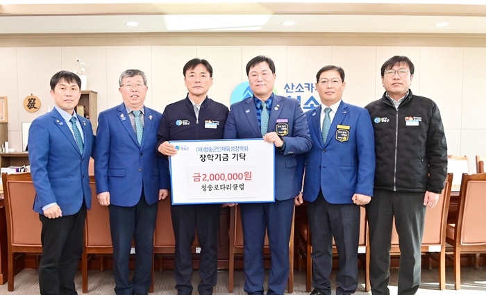 지난 6일 청송로타리클럽(회장 곽병철)은 장학금 200만 원을 기탁했다. 청송로타리클럽은 장학금 기부를 비롯해 급식 봉사, 집수리 봉사 등 다양한 나눔 활동을 통해 지역사회에 꾸준히 봉사를 실천하고 있다.