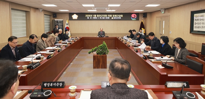 이날 정례간담회에서 정봉훈 의장은 “전 의원과 공직자께서는 병오년 새해, 군민을 위한 의정과 군정 실현을 위해 ‘2026년도 군민과의 대화’의 업무추진에 만전을 기하여, 군민이 더욱 살기 좋은 합천군으로 이끌어 주실 것을 당부한다.”고 전했다.