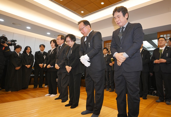 대한민국무공수훈자회 관계자는 5·18 민주화운동 유공자이자 민주평화통일자문회의 수석부의장인 고인에게 헌화·분향을 하며 조사를 낭독했다.