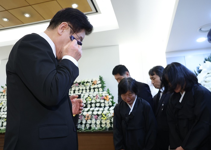 이 대통령은 상주 자리에 함께 선 김민석 국무총리, 더불어민주당 정청래 대표, 조국혁신당 조국 대표 등과도 인사한 뒤 별도로 마련된 접견실로 이동했다.