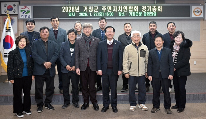 [시사코리아저널=정종민 선임기자] 거창군 주민자치연합회는 지난 27일 거창군청 중회의실에서 읍·면 주민자치회장 12명이 참석한 가운데 2026년 거창군 주민자치연합회 정기총회를 개최했다.