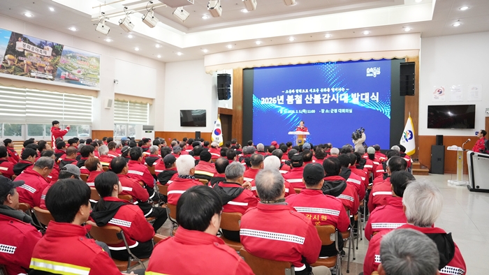[시사코리아저널=김연학 기자] 봉화군은 기후변화로 인한 산불 발생 위험 증가에 선제적으로 대응하기 위해 산불방지종합대책을 수립하고, 산불조심기간을 맞아 지난 5일 군청 대회의실에서 직원, 산림재난대응단, 산불감시원 등 200여 명이 참석한 가운데 '2026년도 봄철 산불감시대 발대식'을 개최했다.