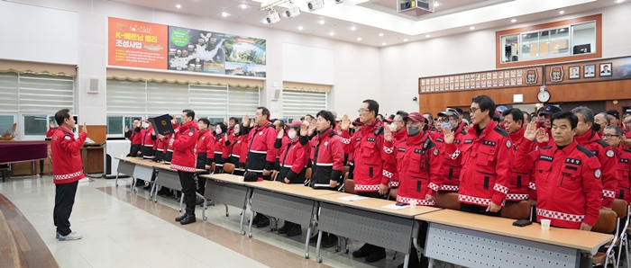 행사는 산림재난대응단 대표자의 산불 예방 결의 선서를 시작으로, 안전한 산불 진화 활동과 체계적인 산불 예방·홍보 추진을 위한 산불감시대 직무 교육 순으로 진행됐다.