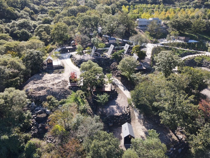 주요 시설로는 캠퍼하우스 11동, 카라반 15동, 텐트 사이트 31개소 등 총 57개 숙박 시설을 갖췄다.