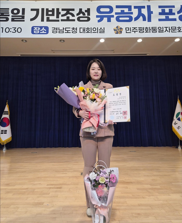 [시사코리아저널=정종민 선임기자] 성보빈 창원시의원(상남·사파동, 국민의힘)이 20일 경남도청에서 열린 2025년 유공자 포상 전수식에서 민주평화통일자문회의 의장인 대통령 표창을 수상했다.