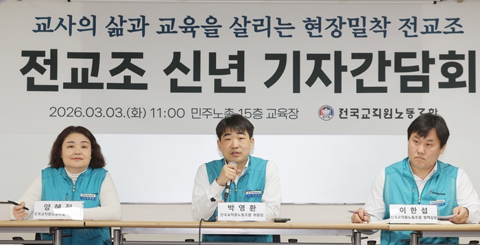 박영환 전교조 위원장은 "2026년은 교육이 가능한 조건을 만드는 데 집중하려 한다. 그 출발점은 교사가 교육할 수 있는 환경을 만드는 데 있다"며 "교사와 학생, 학부모가 함께 숨 쉴 수 있는 학교를 만들고 공교육의 생태계를 다시 건강하게 세우겠다"고 강조했다.
