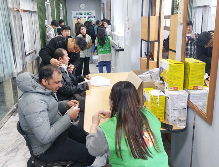 [시사코리아저널=정종민 선임기자] 창원외국인근로자지원센터(센터장 진종상)는 근로복지공단 창원병원(병원장 김기찬)이 창원외국인센터를 직접 찾아 재활의학과 초음파 장비를 직접 동원해 초음파 검사(근골격계)는 물론 가정의학과 무료진료를 실시했다고 밝혔다.