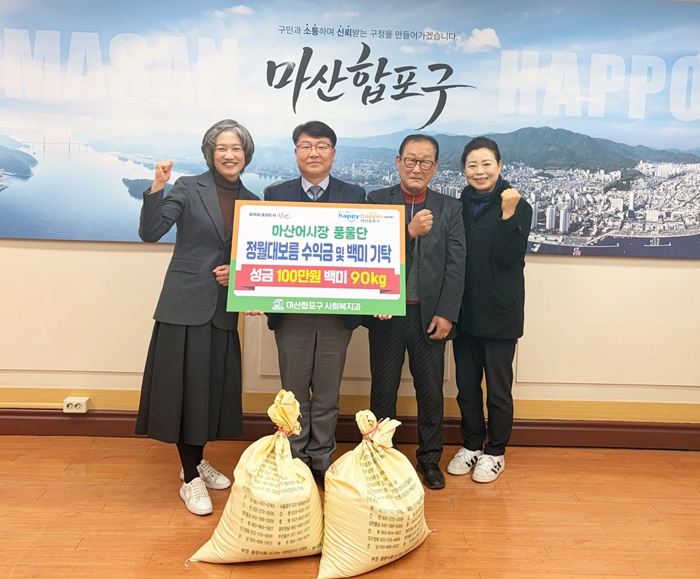 [시사코리아저널=정종민 선임기자] 창원시 마산합포구(구청장 서호관)는 16일 마산어시장 풍물단(단장 조동철, 회장 김기욱)으로부터 관내 저소득 세대를 위한 이웃돕기 성금 100만 원과 백미 90kg을 기탁받았다고 밝혔다.