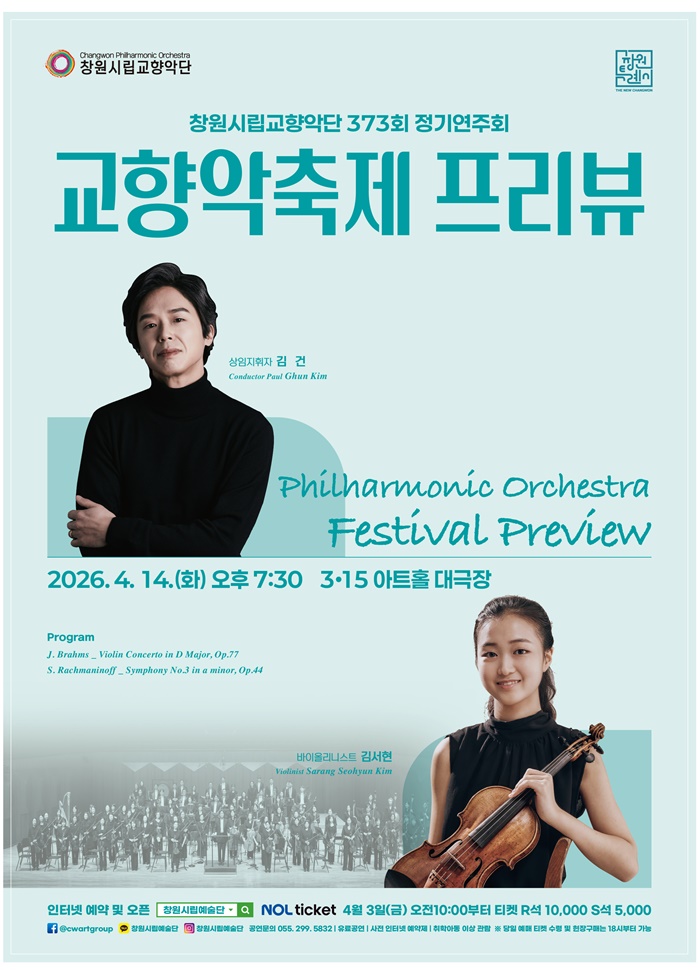 한편, 창원시립교향악단은 이번 프리뷰 무대를 마친 후 4월17일 서울 예술의전당으로 이동하여 ‘2026 교향악축제’ 무대에 올라 창원시의 문화적 위상을 전국에 알릴 계획이다.