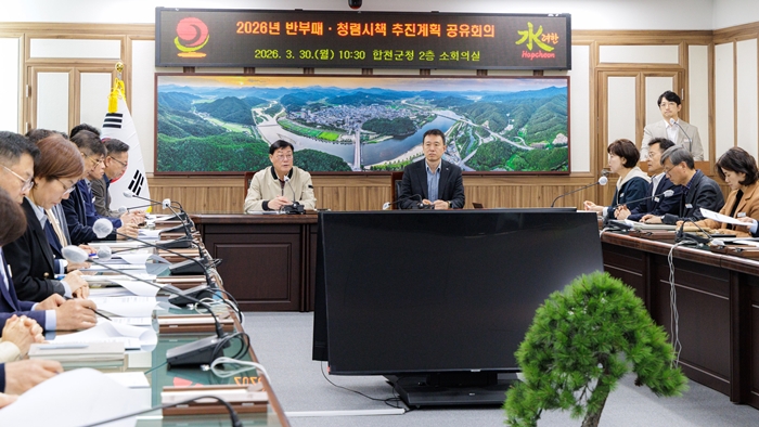 [시사코리아저널=정종민 선임기자] 합천군(군수 김윤철)은 30일 군청 소회의실에서 김윤철 군수를 비롯해 부군수 및 간부 공무원 등 20여 명이 참석한 가운데 회의를 열고, 2026년 반부패‧청렴시책 추진계획을 공유했다.
