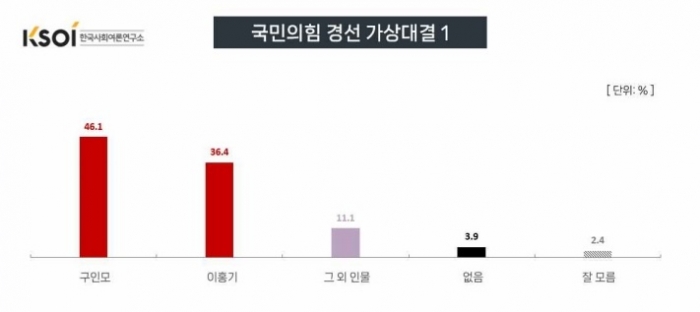 - 양자대결 구인모 46.1% vs 이홍기 36.4%···구인모 50.0% vs 최기봉 12.4%로 조사
